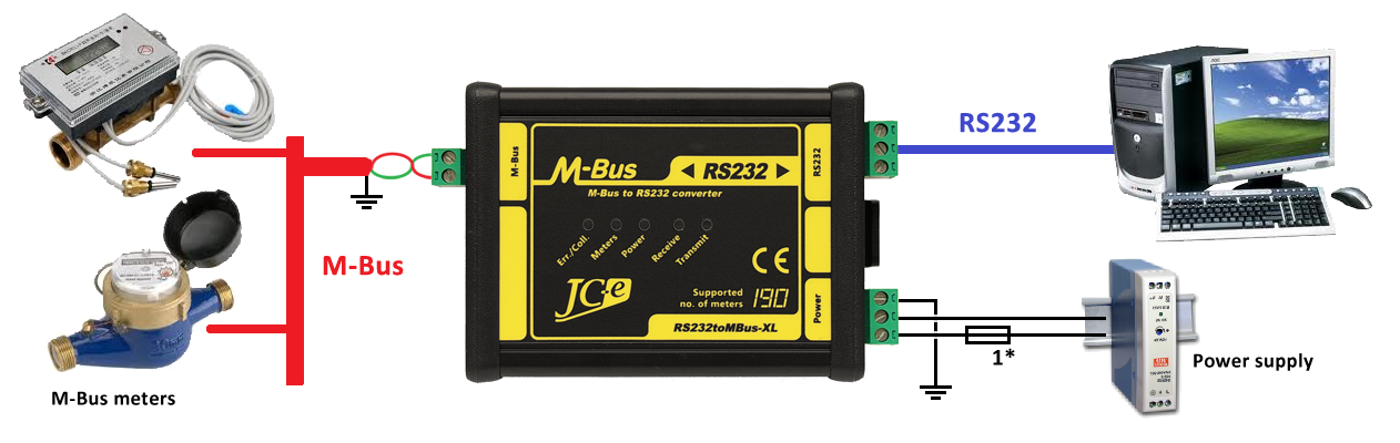 | Galvanic separation | >1kV from power supply, 1kV from the M-Bus line |