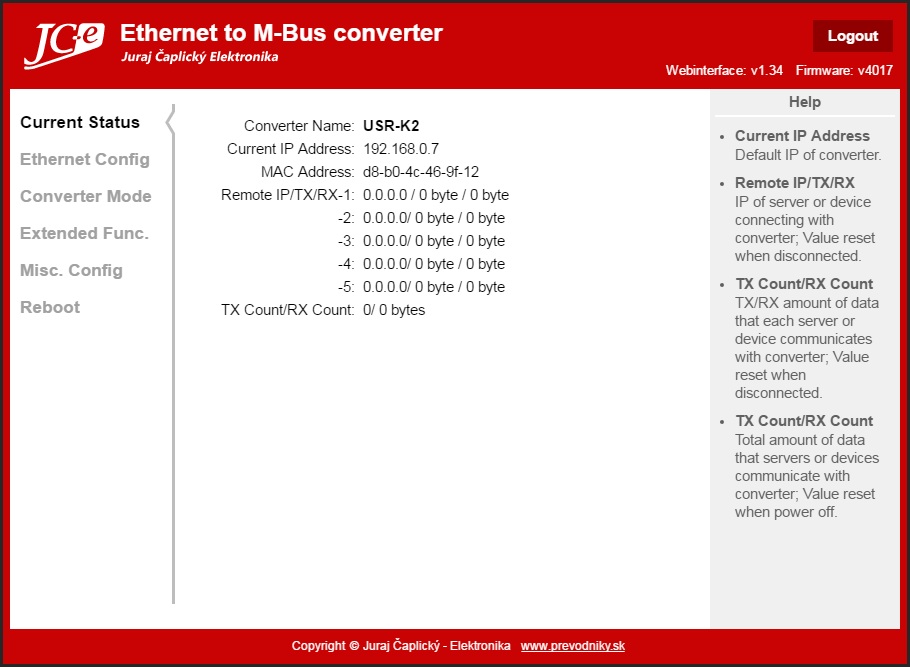 - Konfigurácia prevodníka len cez webové rozhranie.